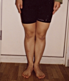 | 矯正前 左右の脚、かかとをつけると、立つことができません。 立っているためには、常に脚を開いている状態でなくてはなりません。 |
